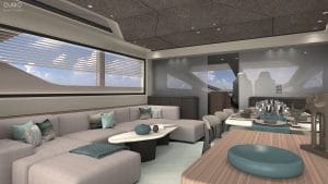 Lüks Ana Kabin: Vento 85 X-One’ın ana kabini, konfor ve şıklığı bir araya getirerek misafirlerine eşsiz bir deneyim sunar.